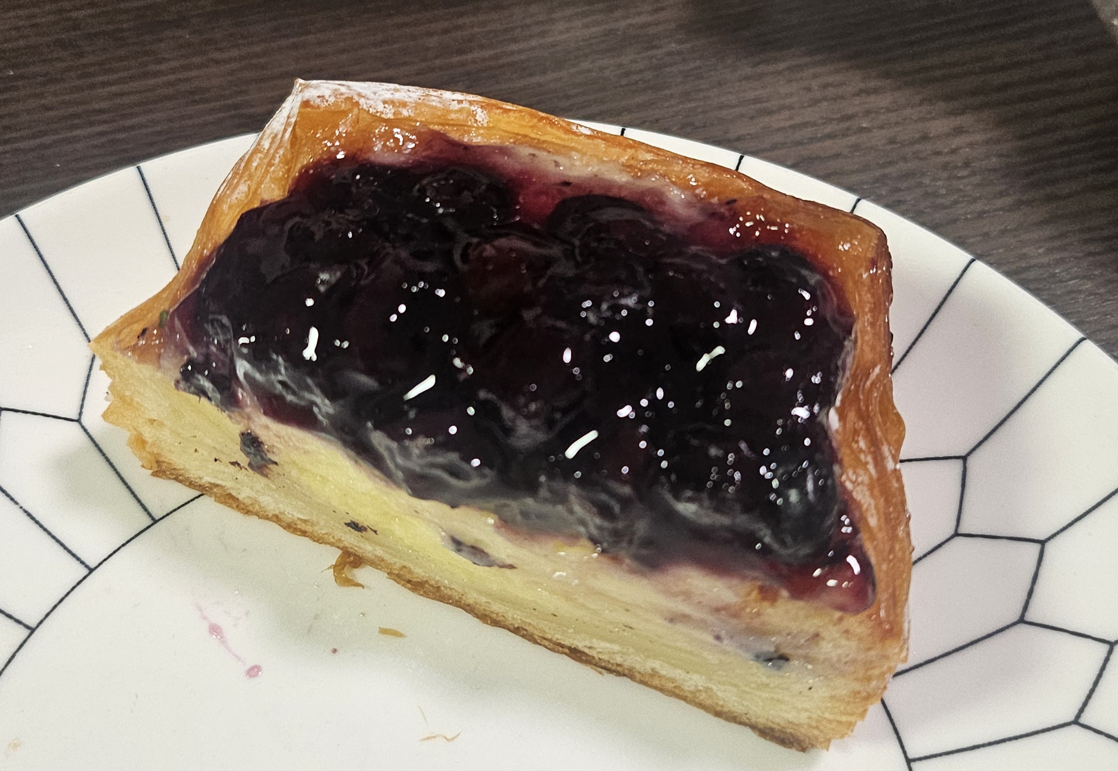 3. 16겹 과일 데니쉬: 맛은 있다. 4천원이면 가성비도 좋다. 여러겹 페스츄리 파이에 블루베리쨈과 크림이 얹어있는 맛. 근데 아는 맛. 또 구매템 정도는 아니다.